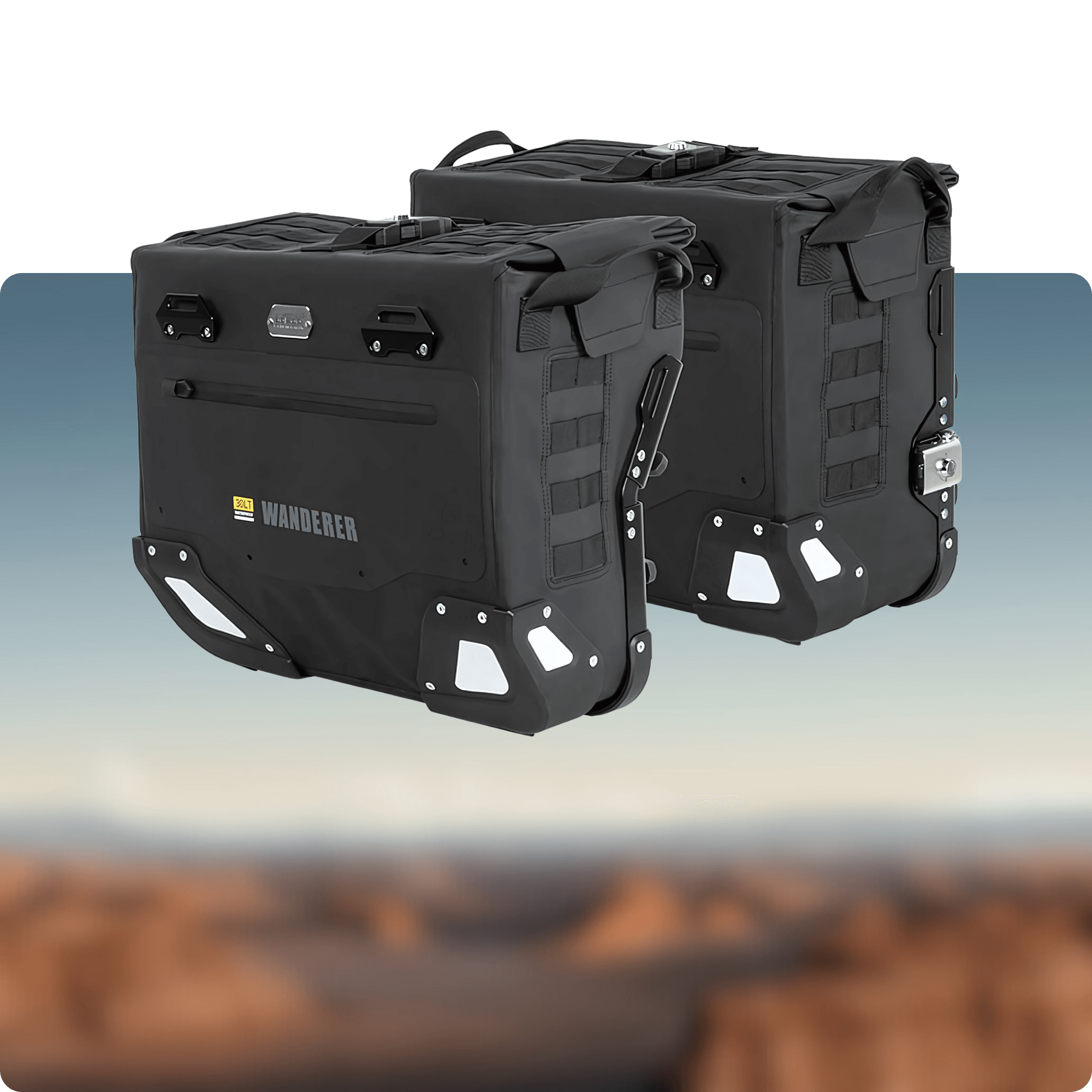 Le Borse Gonfiabili Wanderer per Crash Bar uniscono protezione attiva e praticità: grazie alla camera d’aria integrata assorbono gli urti nelle cadute lente, offrendo al tempo stesso 6 L di spazio utile per lato. Impermeabili IPX7, compatte e facili da montare, sono pensate per chi viaggia 50/50 su strada e sterrato. Testate su 1.200 km, si sono dimostrate affidabili e funzionali.
