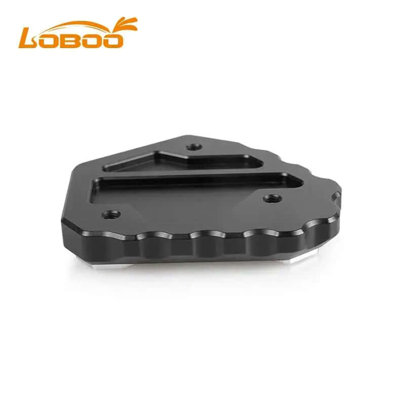 La plaque pour BMW G310 GS Augmente la surface d'appui de la béquille latérale et réduit le risque d'enfoncement sur terrain meuble ou accidenté. en aluminium et pèse environ 130 g, ajoutant ainsi de la stabilité sans alourdir le vélo.