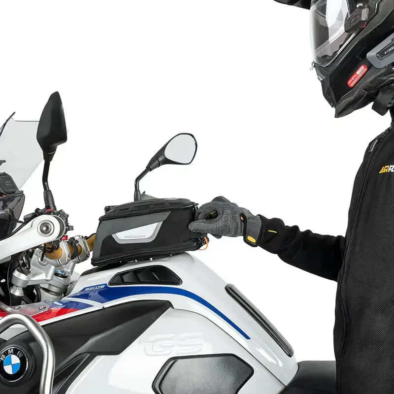 Borsa da serbatoio con volume espandibile da 4,5 a 6,5 litri: perfetta per tenere a portata di mano portafogli, documenti, action cam e caricabatterie. Il profilo basso non intralcia la guida; all’occorrenza si amplia con una semplice cerniera di espansione.