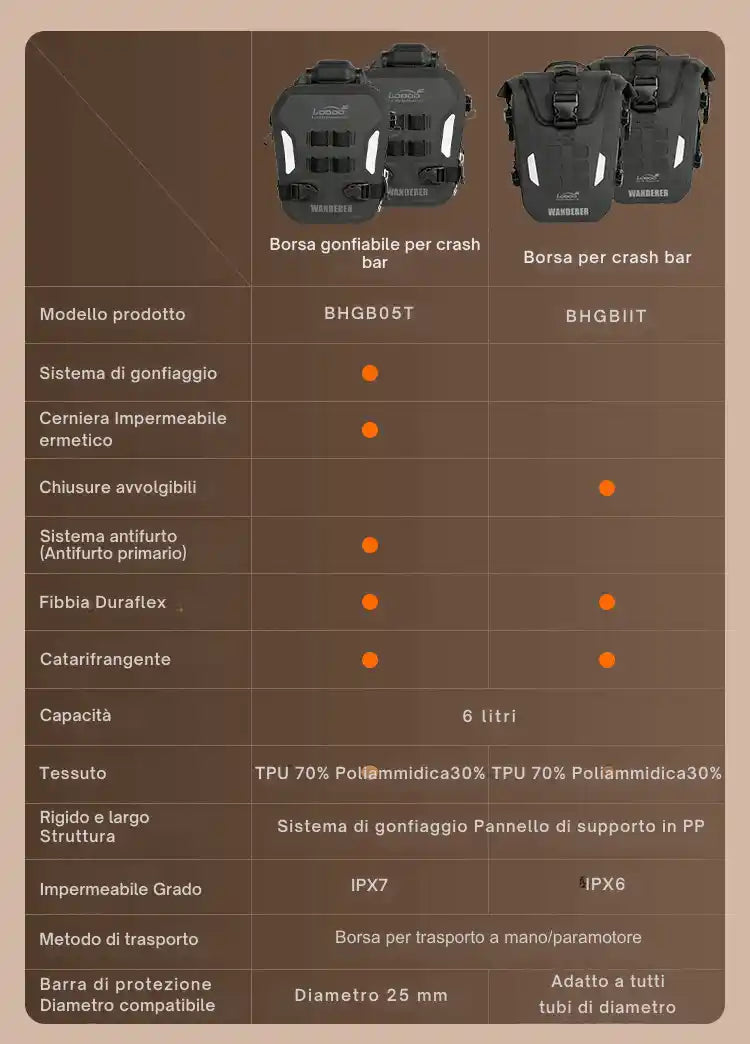 Borse Gonfiabili Wanderer per Crash Bar | IPX7, Gonfiabili Antiurto, 6L cad.