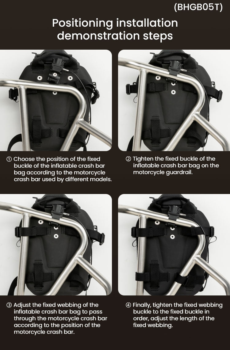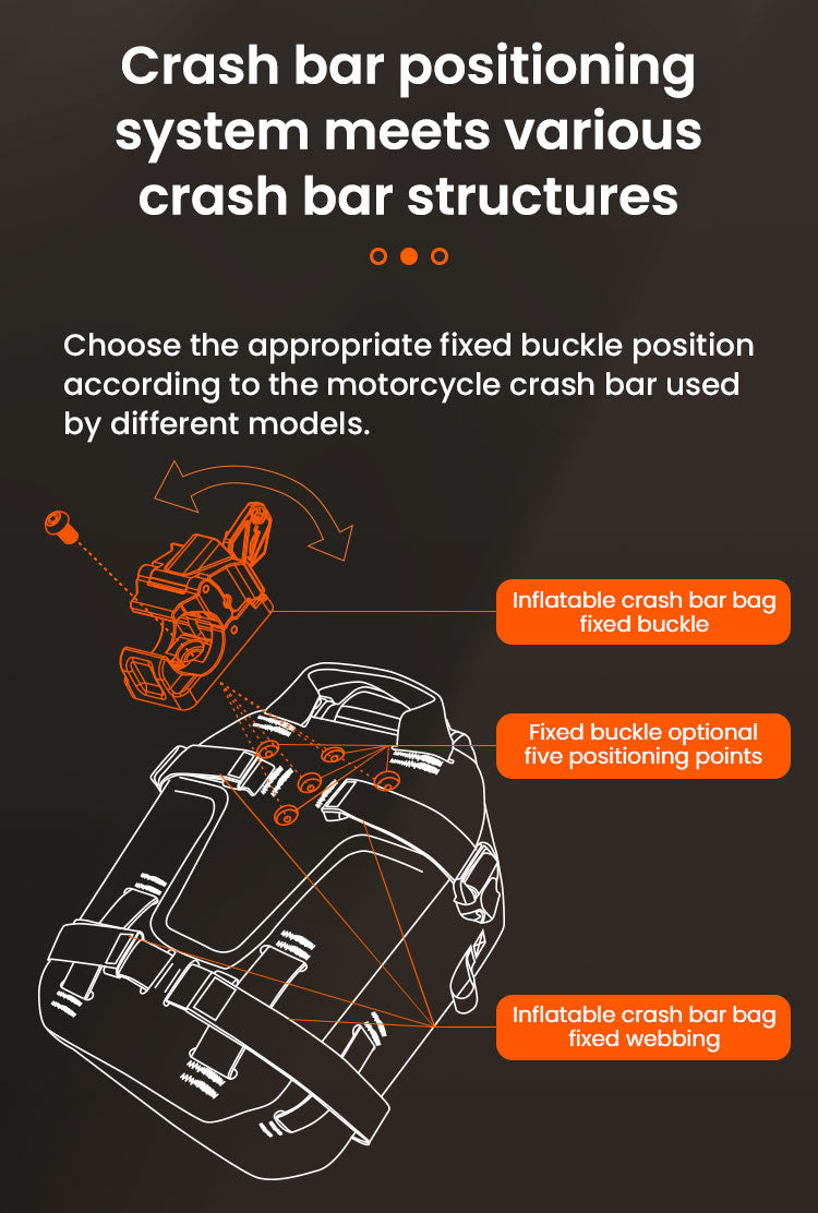 Per proteggere e organizzare l’essenziale sulle crash bar, con un cuscino d’aria che attenua gli impatti e mantiene il carico al sicuro. -