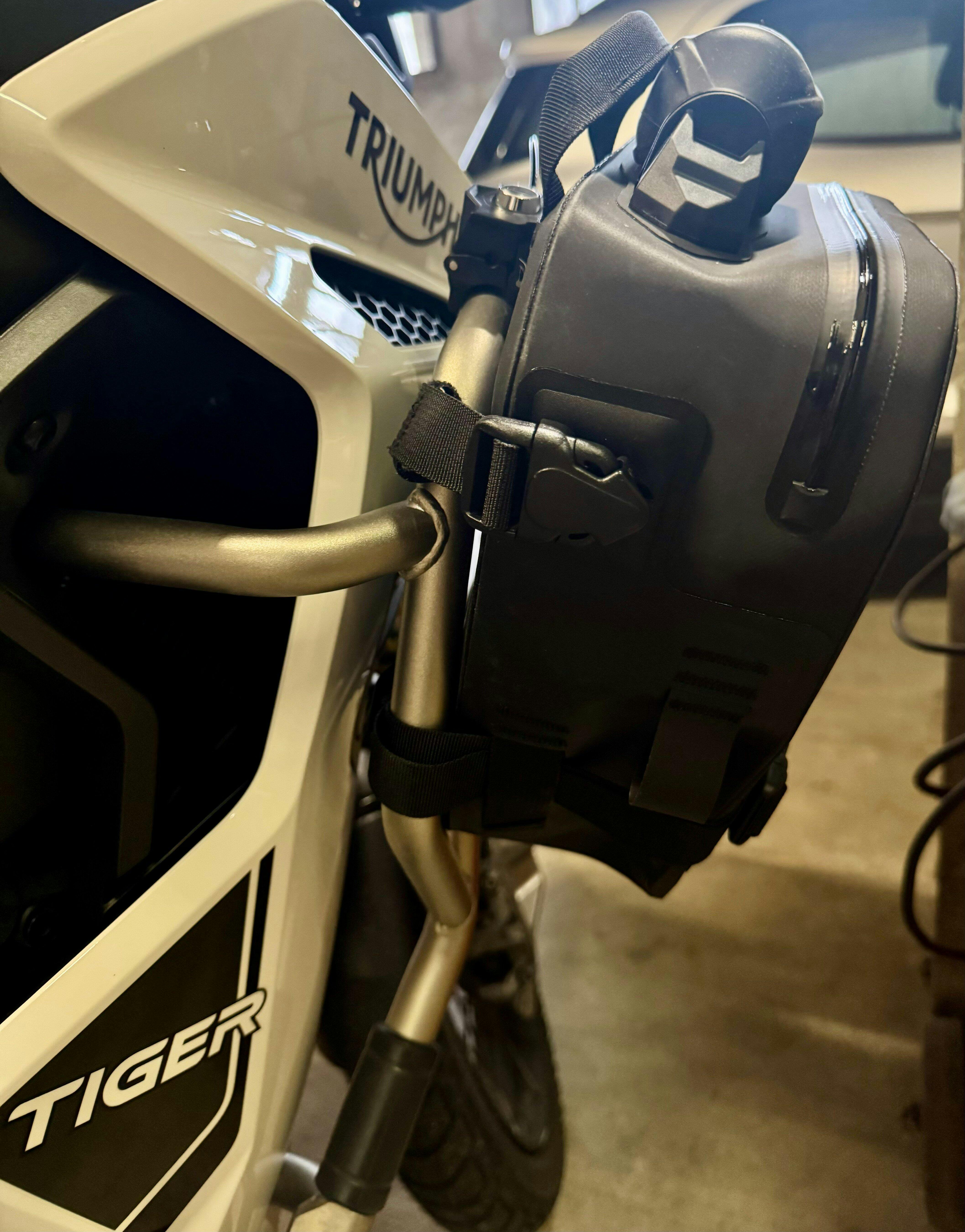 Per proteggere e organizzare l’essenziale sulle crash bar, con un cuscino d’aria che attenua gli impatti e mantiene il carico al sicuro. -