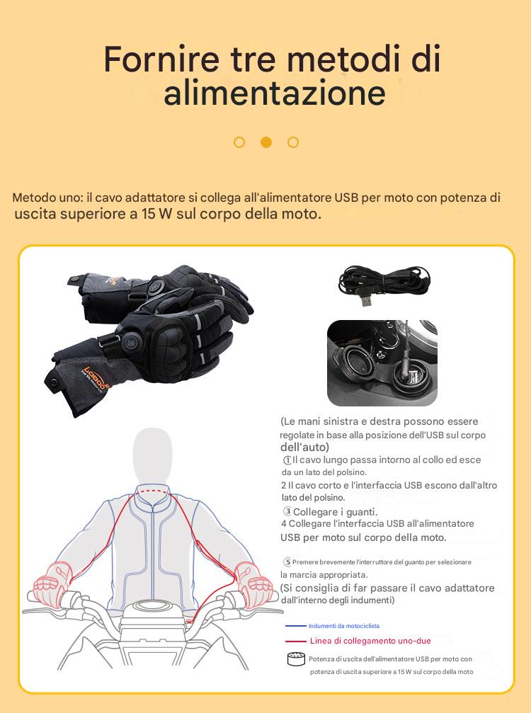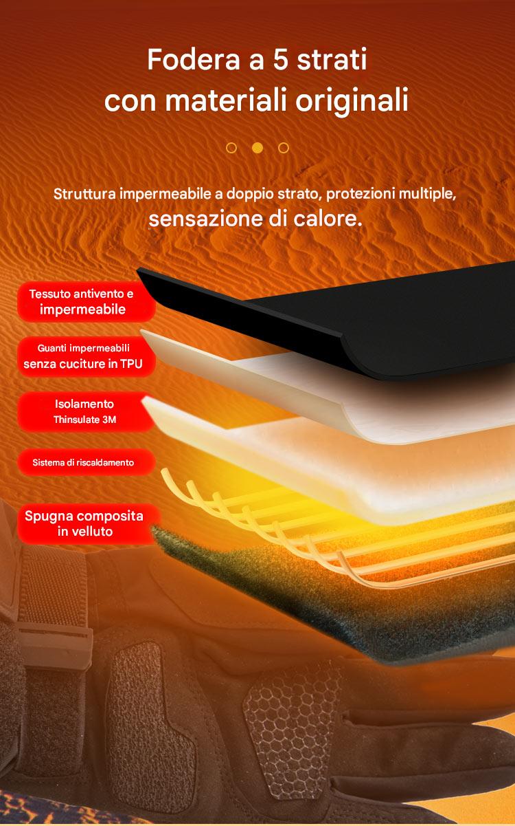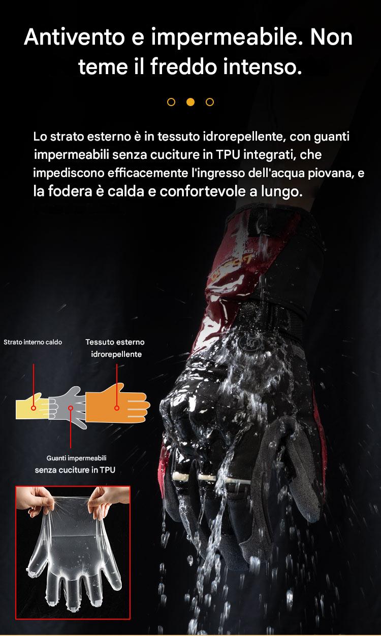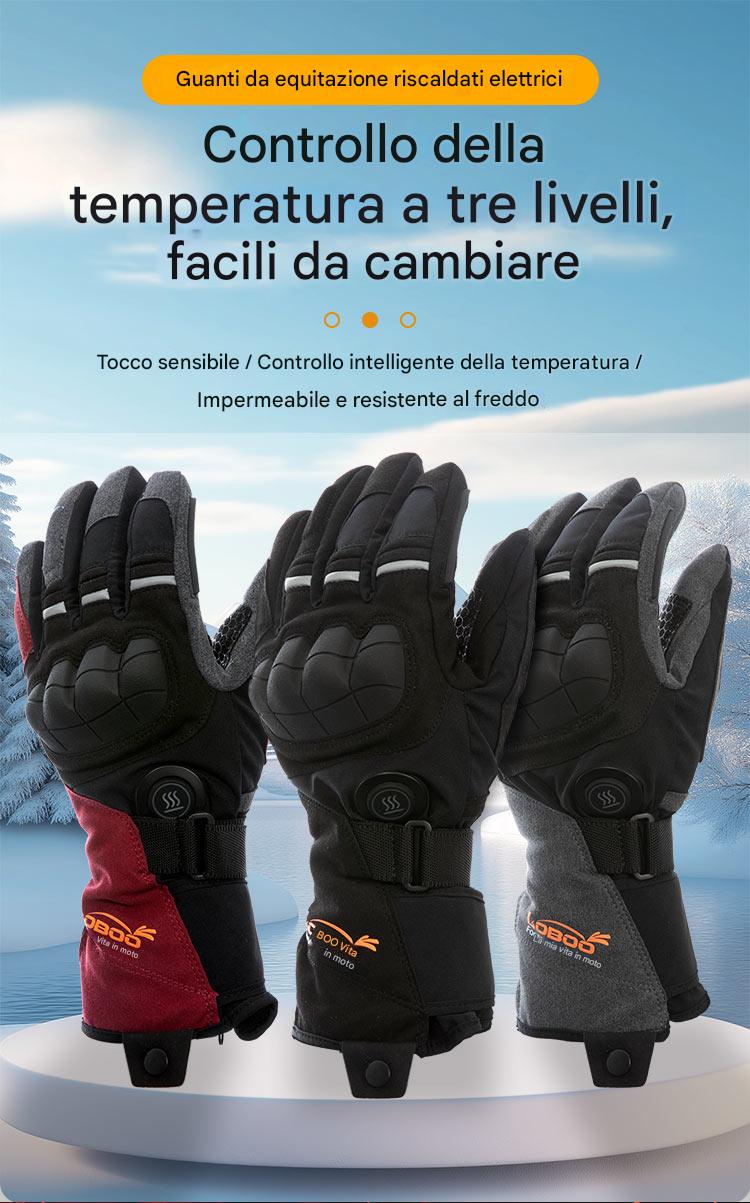 Guanti invernali riscaldati per moto con batteria ricaricabile, membrana impermeabile e protezioni certificate: comfort e sicurezza anche sotto zero.